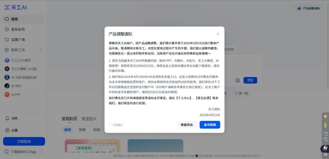 相反,看看其他厂商,因为缺乏核心大模型能力,显然跟不上BAT。比如天工AI为了应对大厂混战带来的冲击,已经准备重新整合升级为全新的天工: