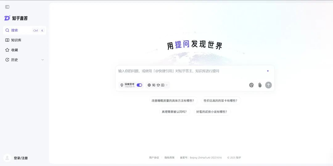 本质上,网上搜索似乎从诞生之初就被完全搜索,即使在AI模型时代。去年11月,知乎推出了其AI搜索应用——知乎直答,主要推广文献库,为知乎大量各行业从业者提供专业文献参考和独家答案,试图以内容质量取得成功: