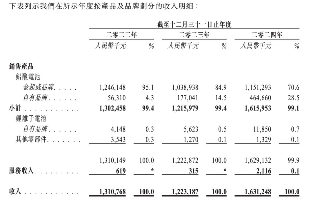在“金超威”品牌背后,超威集团是mainlandChina最大的电池制造商之一。快驴科技是超威集团电池产品的重要合作伙伴。2019年,快驴科技成为“金超威”品牌铅酸电池产品的全国独家总代理。从2022年到2024年,快驴科技向超威集团的采购金额分别为12.45亿元、10.03亿元和15.08 约占采购金额的98.5%,亿元、87%及 99.2%。