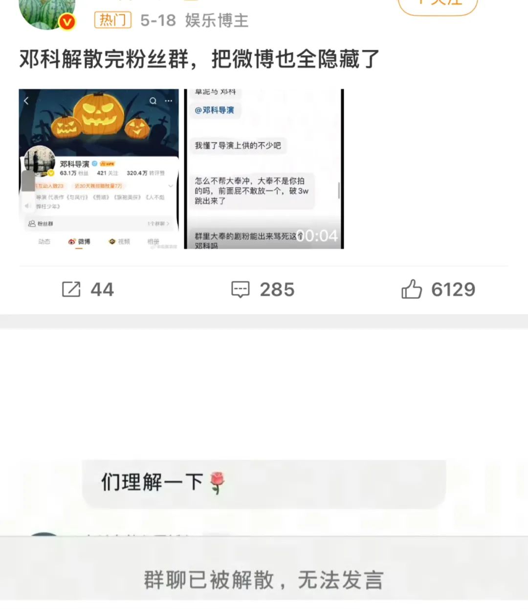 首先,他在粉丝群中宣传《折腰》,被《大奉打更人》的粉丝疯狂攻击,迅速解散粉丝群。然后,他被热搜,因为他把《折腰》拍成了“男性频率喜剧”。