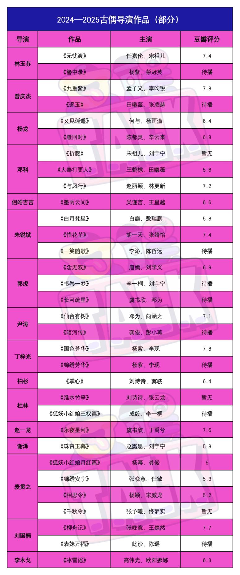 此外,《国色芳华》的导演丁梓光,依靠《墨雨云间》重返古偶赛道的侣皓吉吉也取得了不错的成绩。