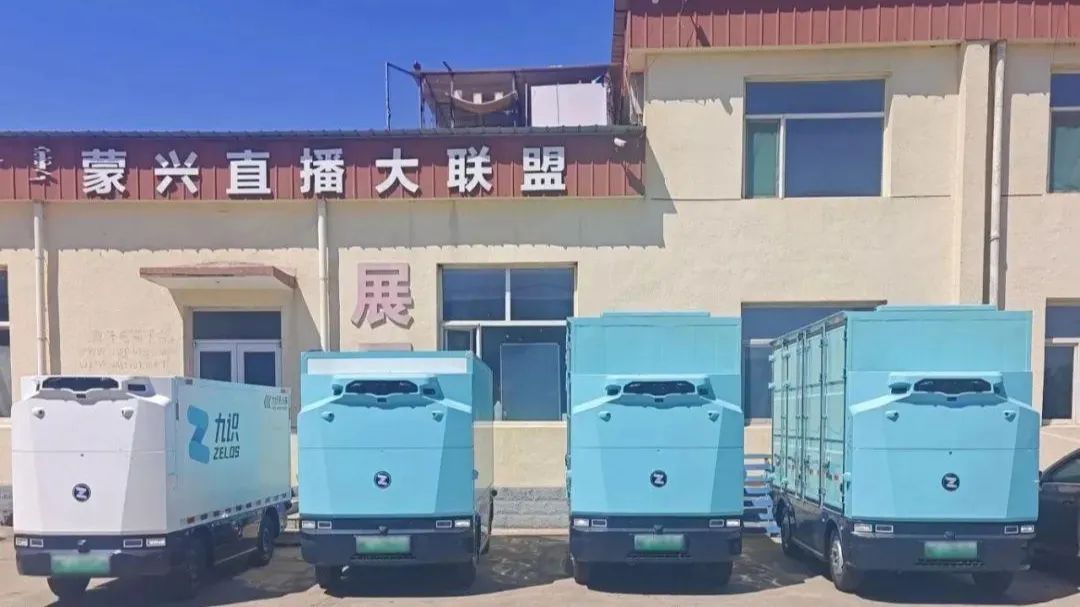 在内蒙古土默特左旗的乡间道路上,沿着规划好的路线,四辆小型无人车穿梭于网点和村庄之间。他们是旗大云网点引进测试的无人车,现在正在分批送到村里。