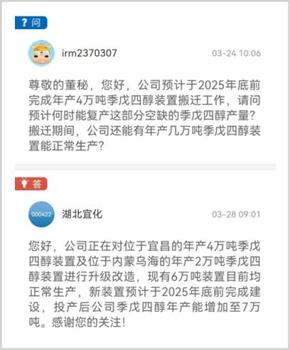 今年3月,有传言称湖北宜化将于2025年6月启动宜昌分公司4万吨季戊四醇装置的搬迁工作,预计2026年4月后将重新投产。