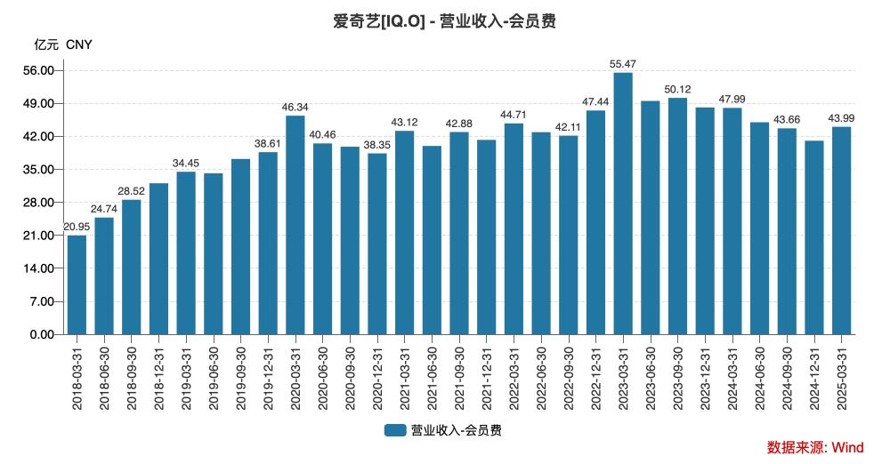 爱奇艺在2025年一季度的会员权益收入为44亿元,比上年同期增长7%。 值得注意的是,从2020年开始,除2022年外,每年第一季度都是爱奇艺会员收入表现最好的季度,季节性相对明显。