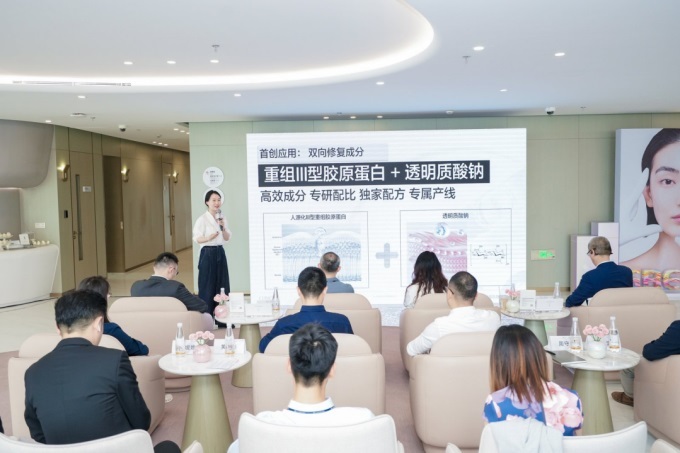 上市将首次公开倩碧CX与化妆器联合研究数据及科研突破内容,确认胶原技术换肤效果显著提高。在会上,金鹰医疗团队同步分享了倩碧CX胶原蛋白临床实证数据,结合真实用户案例,直观地展示了产品对皮肤弹性和紧致度的改善效果。金鹰、倩碧和上药科园团队的三方领导在与会嘉宾的见证下,共同启动了倩碧CX胶原蛋白新产品首发仪式,并授予指定合作机构牌照,意味着战略合作全面实施。