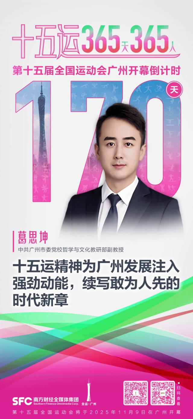 对于第十五届全运会的期待,葛思坤说:“当珠江潮流与全运动脉搏激荡共鸣时,广州正在将体育精神融入城市发展的强大动能,继写敢为人先的时代新篇章。愿广州以全运会为窗口,向世界展示中国现代化的城市样本。”