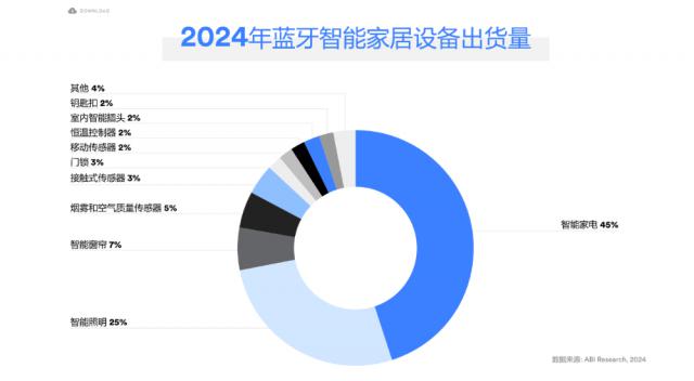 电子爱好者网报道(文章 / 随着智能家居市场的蓬勃发展,蓝牙技术作为连接智能设备的关键环节,在这一领域显示出不可替代的重要性。蓝牙技术联盟表示,蓝牙技术已经成为许多智能家居解决方案的首选技术,目前正在扩大其在家庭物联网中的作用。空气净化器、空调和台式家用电器市场增长最快,出货量比之前的预测增长了两倍。2024 2008年,智能家电出货量占比最大,占智能家居设备的比重。 45%,其次是智能照明。