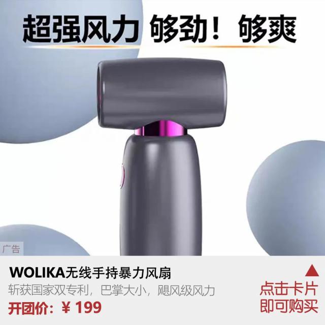 获得我国双专利,堪称风扇界的“瑞士军刀”——【WOLIKA 沃力咖无线手持式暴力风扇