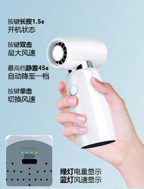 两种颜色都可以选择,精致小巧,可以一手控制。可用作小风扇、吹风机、清洁器具。