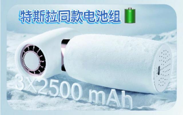 总共3X2500mAh( 大容量电池,7500mAh, 1 文件可持续使用约 3 时间。(暴力风扇 1 档风堪比其它手持风扇最大档)