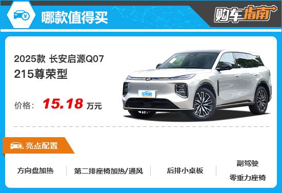 总的来说,如果你关注的话 2025 款长安启源 Q07,那么 215 贵族型值得您优先选择。