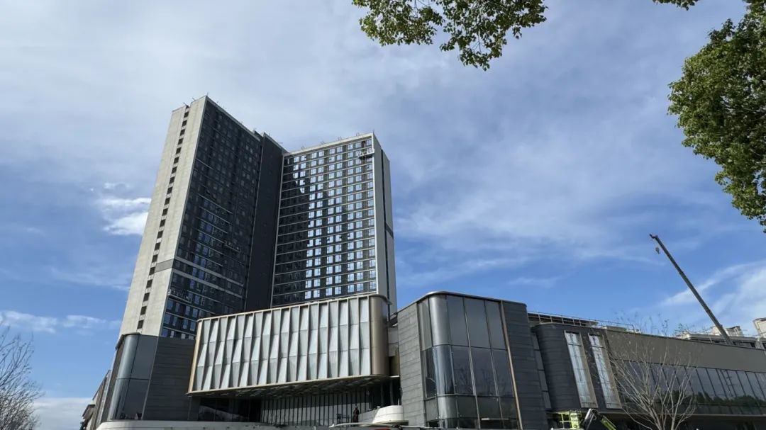 小嘉在施工现场看到,幕墙铝板和玻璃立面已经安装好,立面照明系统已经初步亮起;小区内部电梯安装完毕,项目水电连接,景观绿化也同步进入施工现场,活力街区气息初显。