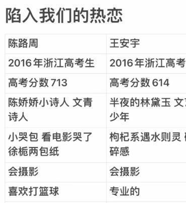 网民们甚至做了陈路周和王安宇的对比表,看起来真的很相似。