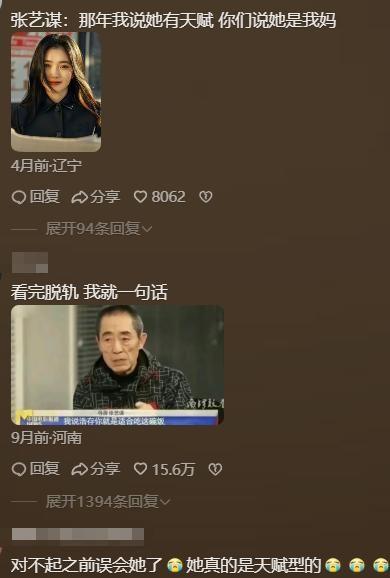 除张艺谋外,当时张译对她的评价,也被观众翻了出来。