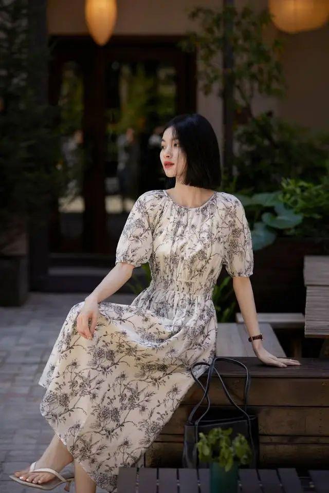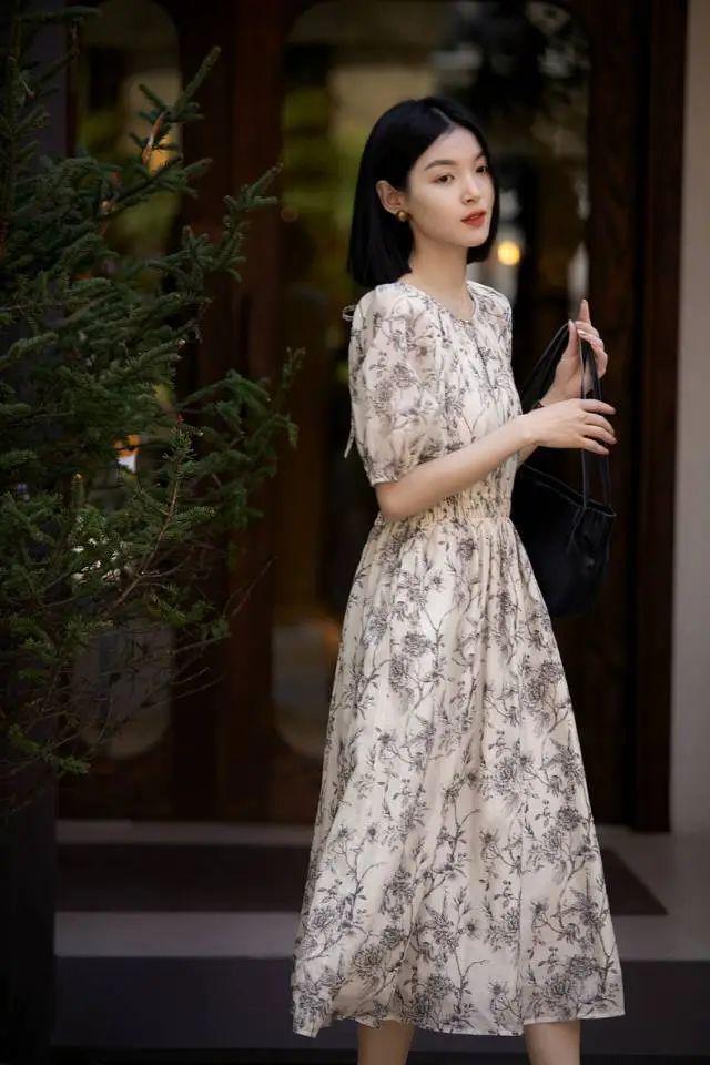 于是,掌柜找到了一件宝物,一件小众服装,今天就是这个模型「老钱风」合集连衣裙。