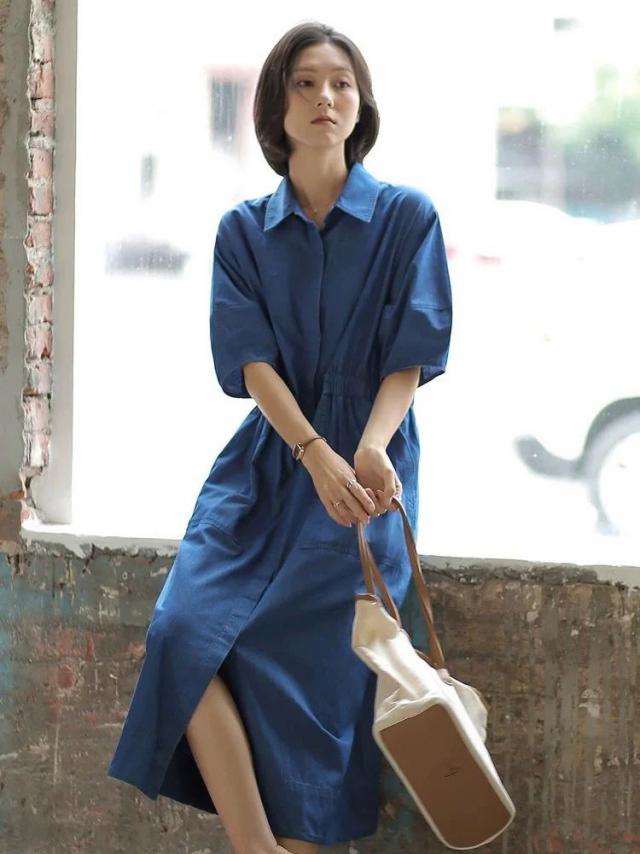 它的蓝色优雅、白色、苗条,即使是黄皮肤的人也可以穿得很洋气。不选年龄,任何场合都适合!工作日穿,专业干练;购物时尚高级。