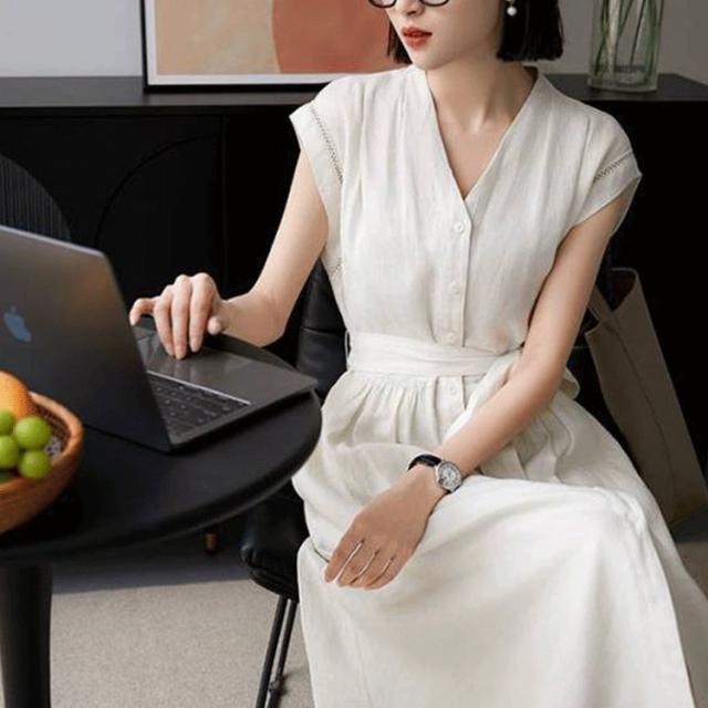 我们找到了答案,就在你面前:亚麻花蕾袖紧腰显瘦圆领连衣裙。时尚兼顾松弛感,搭配姐系高级感。
