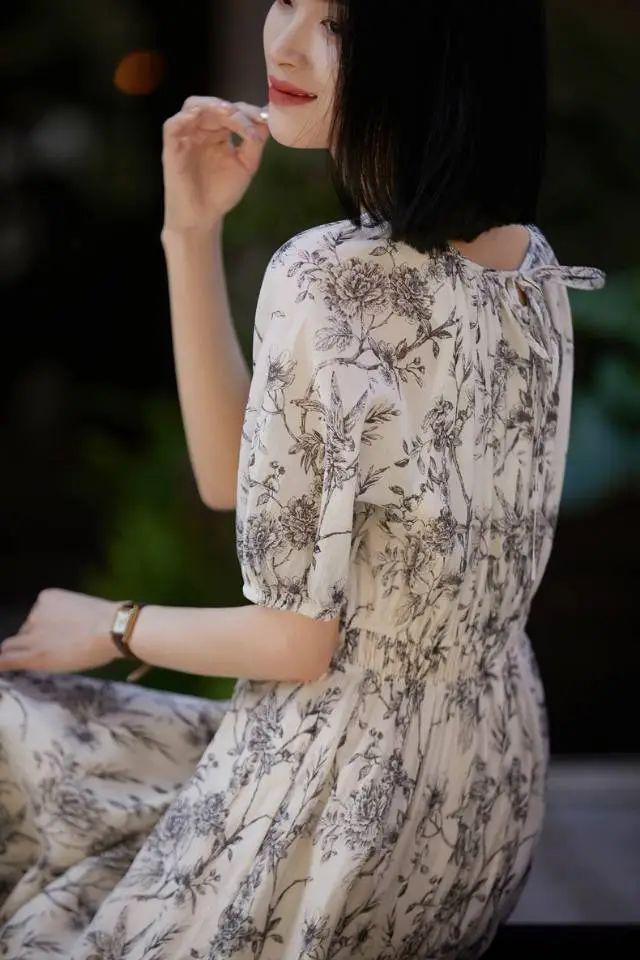 有一个非常好听的名字, " 花月汤泉 " 丝棉茶歇裙。