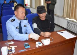 医疗康复科警察王平利用医疗专业知识,对社会保健人员进行血糖测量和血压测量,并根据咨询情况给出诊断、治疗和锻炼建议。教育科警察王圣瑞和何海峰组织社会保健人员填写《社会保健人员基本信息表》,收集信息,建立档案;通过个别对话,系统掌握社会保健人员的生活、就业和家庭状况,为后续工作奠定基础。