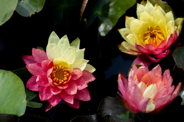 最近,在安徽省淮北市杜集区的一个生态公园里,半红半黄的双色睡莲盛开,美不胜收。