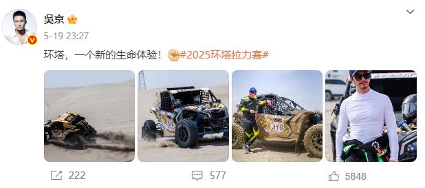 此前,吴京多次发文汇报自己的比赛进程,5。 月 19 日本,吴京发文称:“环塔,一种新的生活感觉!”