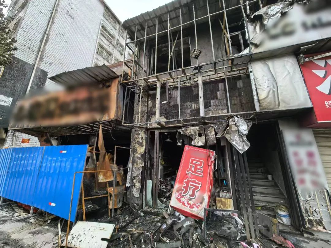 火焰和烟雾涌向附近的足浴商店