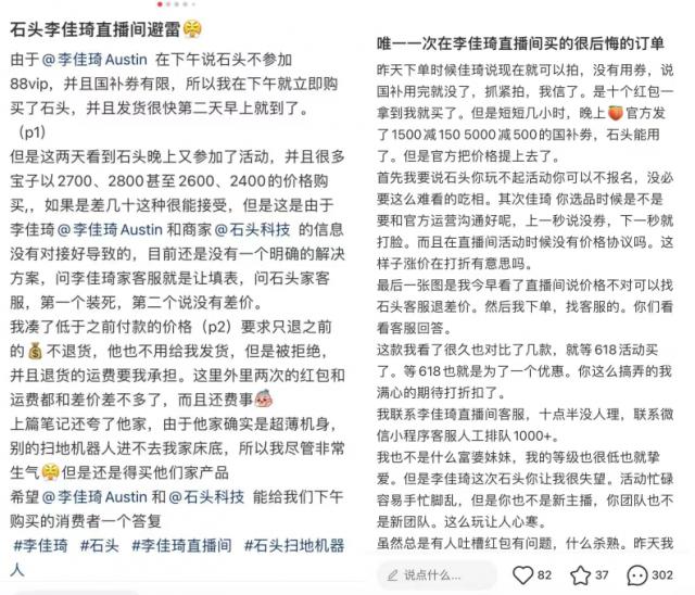 关于石头爆单,不少消费者表示是因为李佳琦直播还表示品牌不参与。 88vip 而且国补券有限,一旦错过最近就不会再有这么强的折扣,结果商品拍完就降价了,顾客似乎真的被“背刺”了。