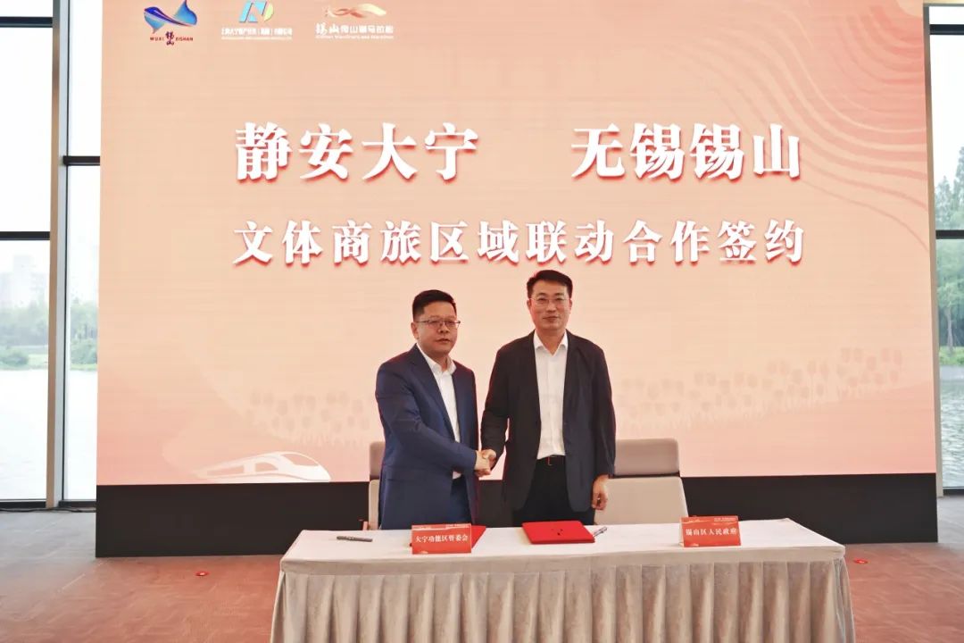 现场,上海市静安区大宁功能区管委会与无锡锡山区人民政府签署静安大宁-无锡锡山文化体育旅游区联动战略合作协议。