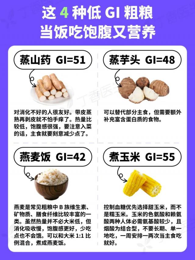 减肥时,适当多吃低食物。 GI 食物,因为消化缓慢,保持饱腹感更长,不吃不喝,减肥更容易。根据最新版本的《中国食品成分表》,只要是食材。 GI ≤ 55,便是低 GI 食物了。