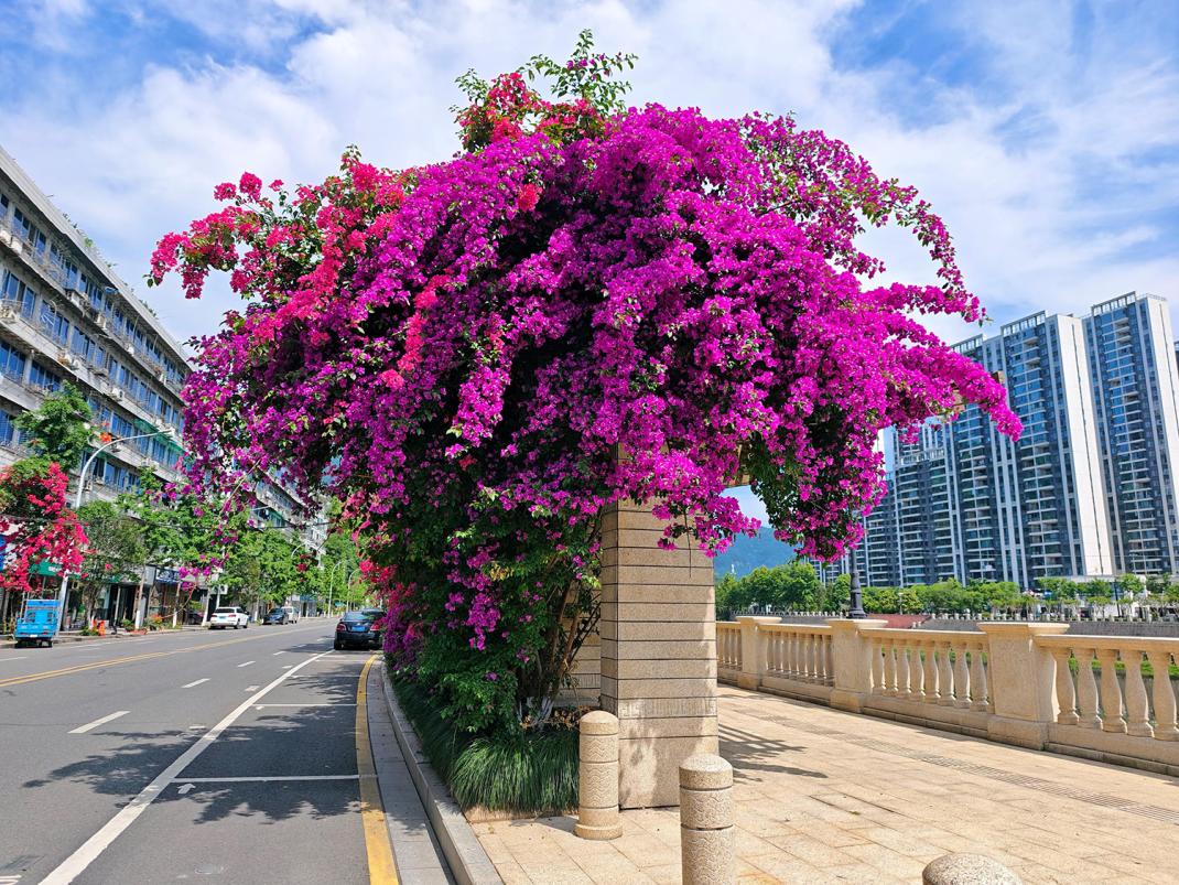 连日来,温州街头巷尾的九重葛盛开,紫色、粉色、白色的花朵像瀑布一样落下,为瓯越地面披着绚丽的衣服,吸引市民和游客停留打卡,限制夏天的浪漫。和小布一起去欣赏吧~