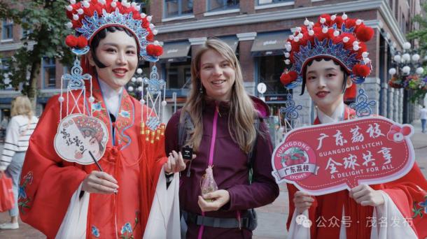 中荔集团从2022年开始经营“荔枝花旦”品牌。集团营销总监黎焯锋告诉南都记者,“我们将荔枝与东方戏剧花旦形象相结合,展示了几千年的荔枝文化和戏曲文化。消费者在国外推广时,对这些传统文化故事非常感兴趣。”