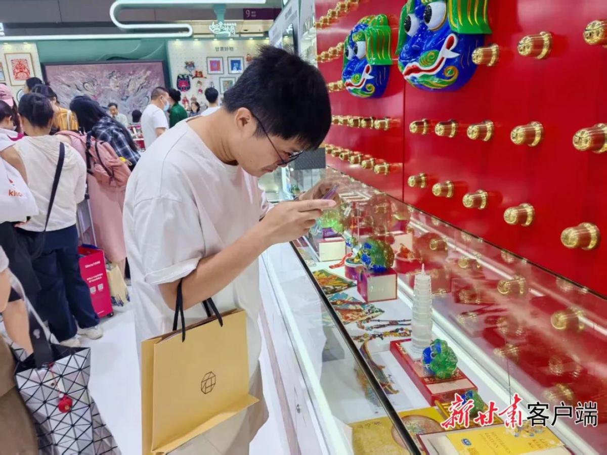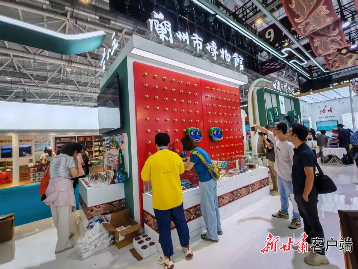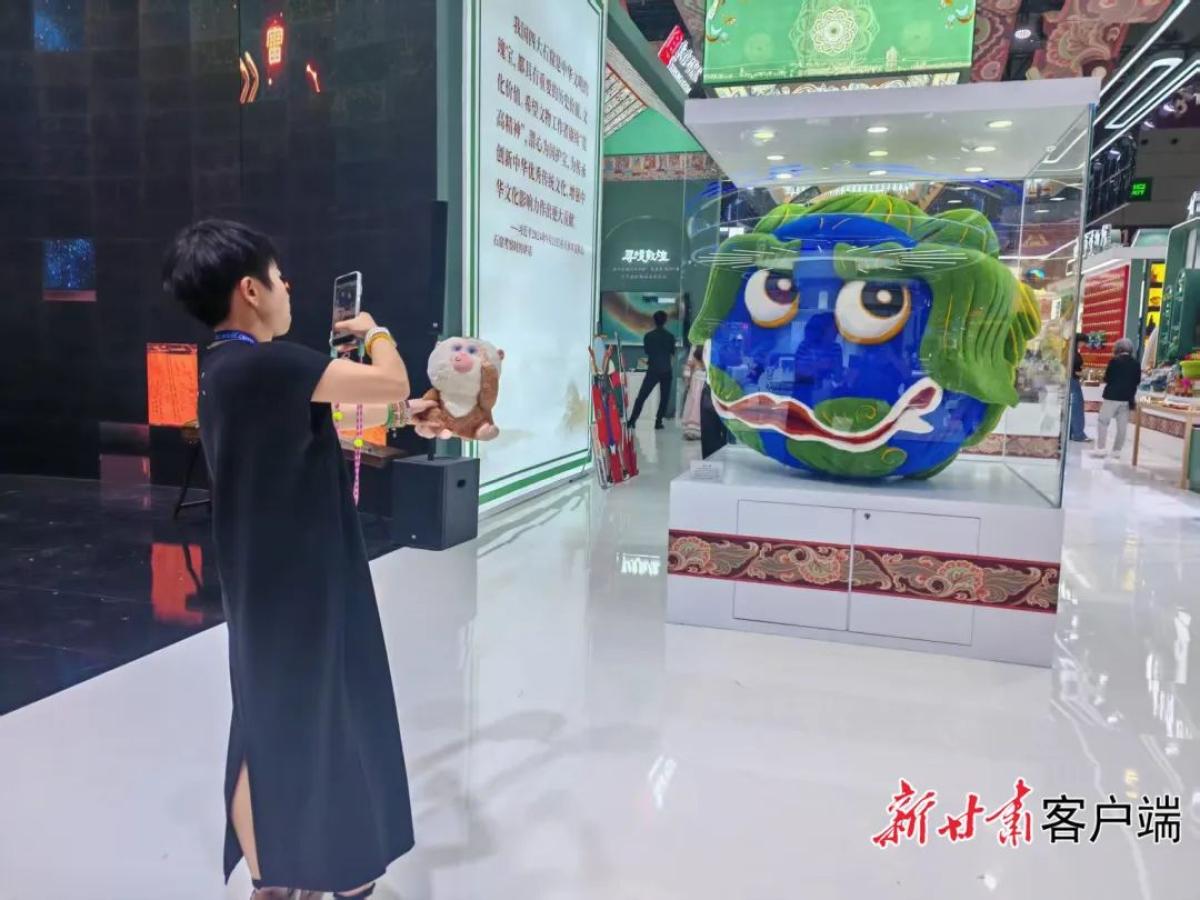 在甘肃主题馆入口处,一件大型“兰小五”现代设备艺术品非常抢眼,过去的观众停下来合影留念;在兰州博物馆展区,琳琅满目的“兰小五”文化创意产品摆放整齐,吸引大家咨询购买。