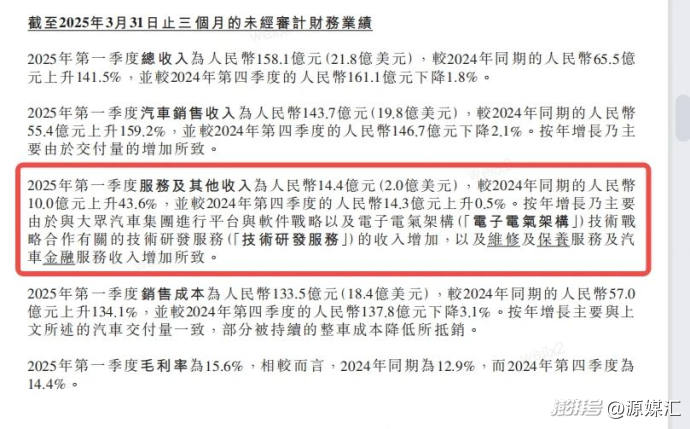 “新力量与这些跨国品牌汽车公司达成合作,目前很容易买卖。小鹏是一个,零跑也是一个。”5月23日,一位熟悉汽车公司技术R&D服务相关收入的业内人士告诉源Auto,除了提供技术R&D服务外,外部零部件也是一个概率。“技术授权对于去年第四季度实现盈利至关重要,他们预计2025年这方面的收入比例将超过5%”。