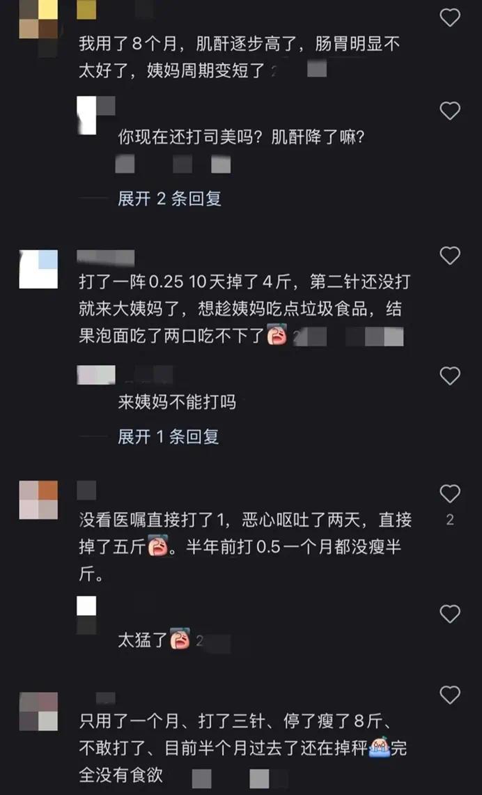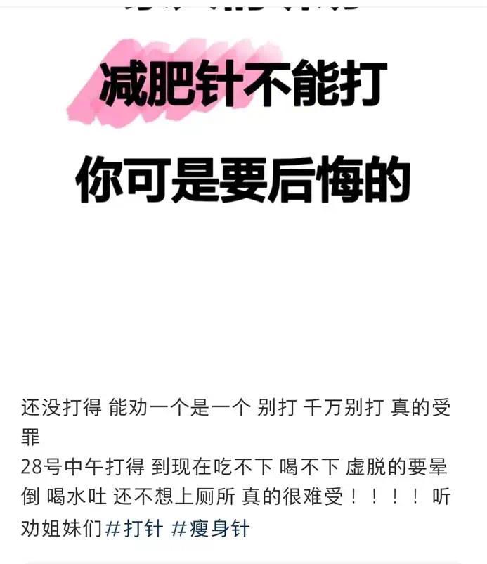 有人提到打针后“天天虚弱无力”,也有人担心胃胀口渴。也有网友说“打了两针没瘦多少,打了三个月就反弹了十斤”。