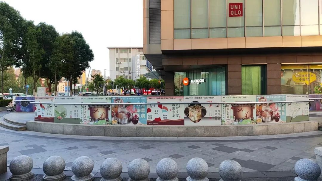 随后,东溪汇进行了整改,临时安装了两台中央空调,并增加了道路围护广告。然而,商家的反馈是“供暖效果有限”。围栏广告中唯一的餐饮宣传是泡菜火锅。