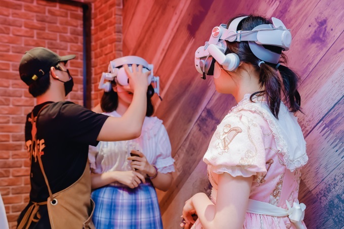 “全职大师”主题店集群作为上海世茂广场“IP兴趣经济”落地的第一个标杆项目,由东区L219的三大板块组成,选择12K超清画质与全感官互动技术。客户佩戴设备后,可以成为“荣誉大陆”玩家,与虚拟人物叶修团队完成游戏副本,感受45分钟的全沉浸人物扮演。
