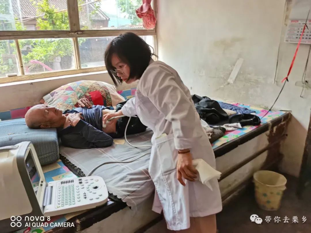 “张叔叔,今天我给你测血压。”“李奶奶,我们先做个健康登记。”一到村民家,医护人员就立即分工合作。有的人握着老人的手,耐心注册健康服务,有的人轻轻挽着老人的袖子测血压,有的人调试设备准备心电图和b超。从评估到检查,从记录到指示,每一个环节都是认真细致的。