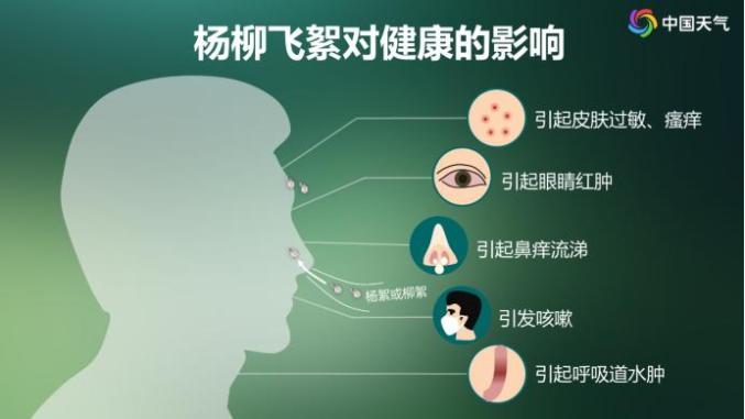 但由于花粉、灰尘等过敏原容易吸附在飞絮表面,接触后可能会引起皮肤瘙痒、鼻炎甚至哮喘。所以建议大家外出保护,过敏群体要及时服用抗过敏药物。