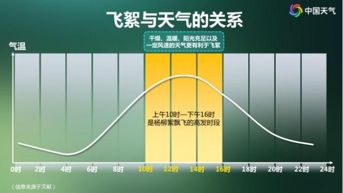 晴朗干燥的天气环境下,一天中10点至16点是柳絮飞舞的多发时间。