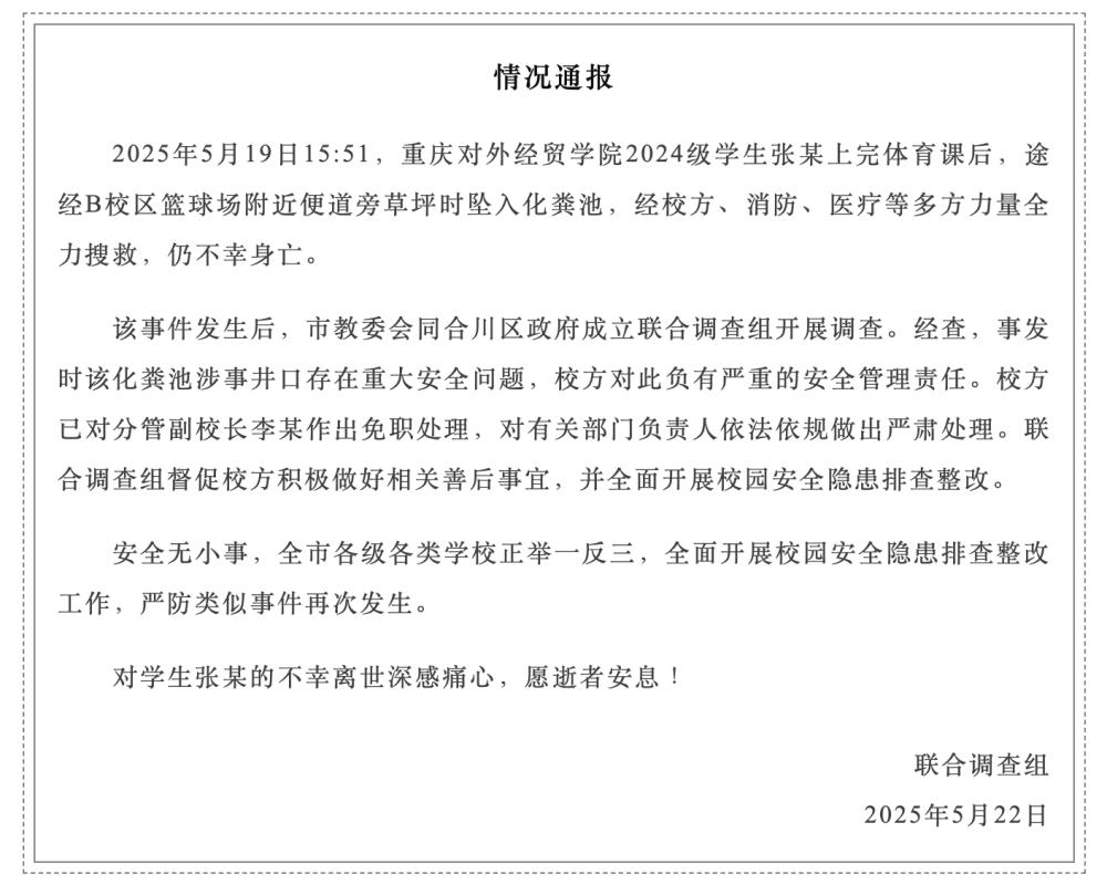 重庆一男大学生在学校遇难,最新官方通知!脚底“雷区”请警惕