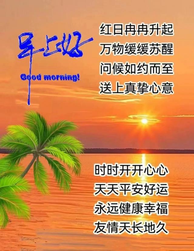 日出日落日复一日,早晨问候礼当先,我们永远不会忘记我们的友谊。缘分真情牵线搭桥,分享当下生活的美好,幸福安康的每一天!早上好!朋友,身心健康!