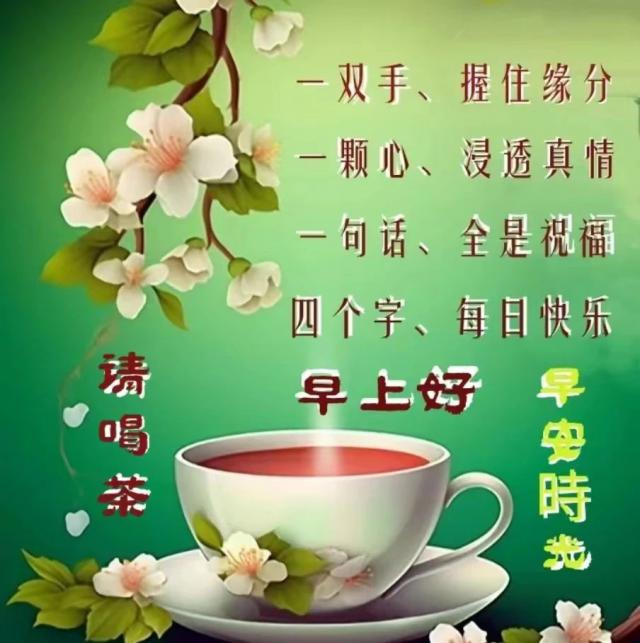 早上好!每天早上,给自己一个微笑,告诉自己,人不仅要像裸钻一样生活,还要像裸钻一样坚强!像烟花一样精彩!心的方向是阳光,无所畏惧,也就是远处,人生最幸福的事,不是活得像别人,而是努力后活得更像自己!早上好!