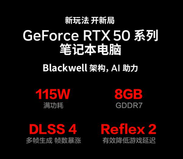 RTX 5060 笔记本电脑 GPU 这是目前笔记本市场上的一张显卡。它基于 NVIDIA Blackwell 架构,拥有 3328 个 CUDA 核心,并与之匹配 128bit 位宽、8GB GDDR7 显存。该 GPU 同时支持 DLSS 4 和 Reflex 2 等 NVIDIA 技术。与上一代 RTX 4060 笔记本电脑 GPU 相比,RTX 5060 的 CUDA 增加了核心数量 30%。