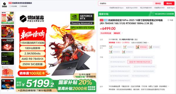 新一代机械革命游戏本销售 RTX5060 性能明亮的锐龙9