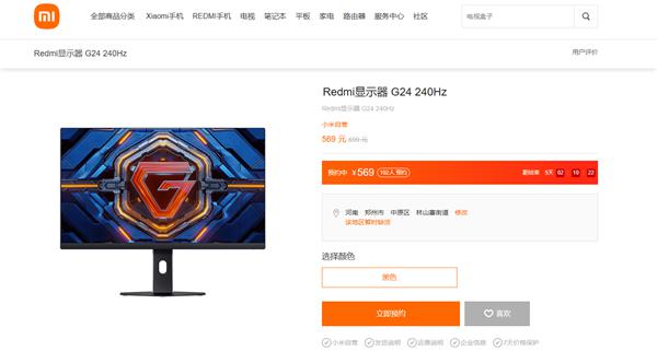 G24发布REDMI全新显示屏:569元 1080P 240Hz高刷屏