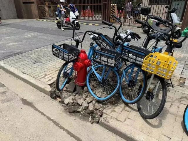 根据目击者的记忆,事故发生在河间路。 688 建立小区门口。今天早上 10 当时,记者来到现场,看到断了的消火栓已经修复,周围还留有事故痕迹:多辆自行车共享车的轮胎钢圈弯曲变形,事故车辆碰撞后留下的碎片散落在绿树旁边,人行道上留下电动车倒下滑行的划痕。