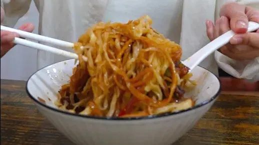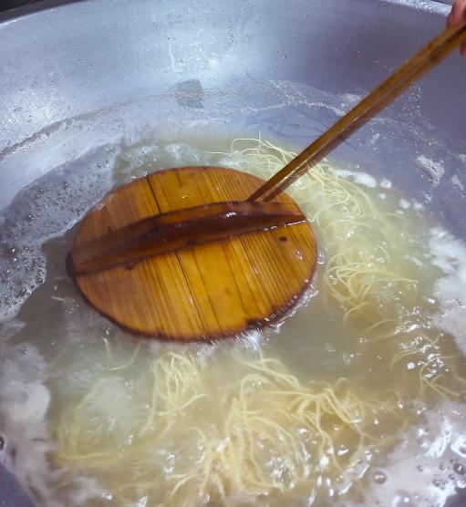 刀面,简单地说就是用刀切好的面条,手工工作非常注重。面条切得细细的,有一定的弯曲度。