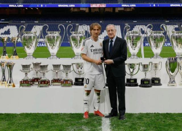 在皇马的 13 多年来,莫德里奇一共赢得了冠军。 28 一个冠军是皇马历史上获得冠军最频繁的球员。莫德里奇举起双臂向球迷挥手。同样,他也看起来像眼泪。当他离开时,莫德里奇紧紧地拥抱了他以前的搭档克罗斯。