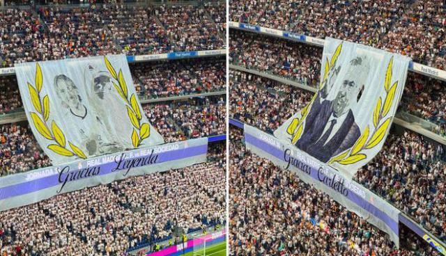 今天的比赛是皇马安帅的最后一场比赛,也是伯纳乌魔笛和巴斯克斯的最后一场比赛。比赛前,伯纳乌 8 万人为 3 位功勋给予掌声。在看台上,球迷们设计了巨大的设计。 TIFO,向安帅和魔笛致敬。