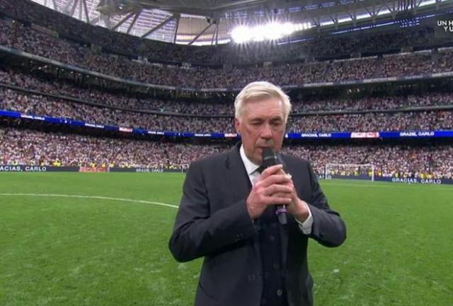 比赛结束后,已经看到很多大场面的安切洛蒂,很难控制自己的情绪,让眼泪夺出眼睛。意大利著名教练的眼睛完全红了。赛后告别仪式上,安帅说:“这次旅行令人愉快和自豪。教这个俱乐部是我的骄傲。谢谢你爱的弗洛伦蒂诺。”